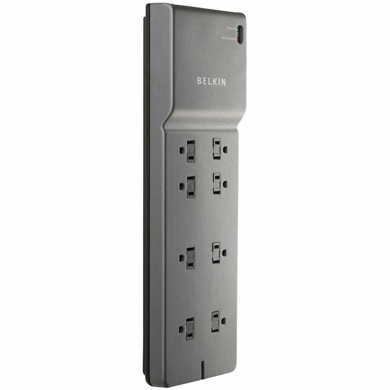 The Belkin 8-Outlet Home/Office Surge Protector protects your electronic devices from surges and spikes. This 3550-Joule surge protector provides eight surge-protected outlets with sliding safety covers to supply complete, 3-line AC protection for your workstations, printers, broadband modems, home theater systems, and everyday household electronics. The surge protector features a slender, sleek design with a right angle plug and a detachable cord-management clip to help keep cables organized.