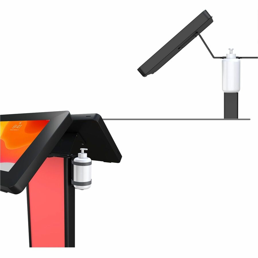 The Premium Locking Floor from CTA Digital makes any office, retail store or grocery store entrance a lot cleaner and safer for its customers. The heavy-duty and secured Dual Enclosure ensemble protects your tablet from theft with a lock and key while simultaneously serving two customers. The enclosure is designed to allow full access to your tablet's charge ports and front camera while foam pads make the enclosure virtually universal for any 9-11" tablets. The metal bracket strategically placed in between the enclosures is a must have for any business. It fits and keeps in place any of the market's soap and hand sanitizer's bottles by using two adjustable Velcro straps. Standing at 48 inches tall, this heavy-duty floor stand is ADA compliant, offers the option for customization through front and back slots and boasts a weighted base equipped with slip and scratch resistant padding.