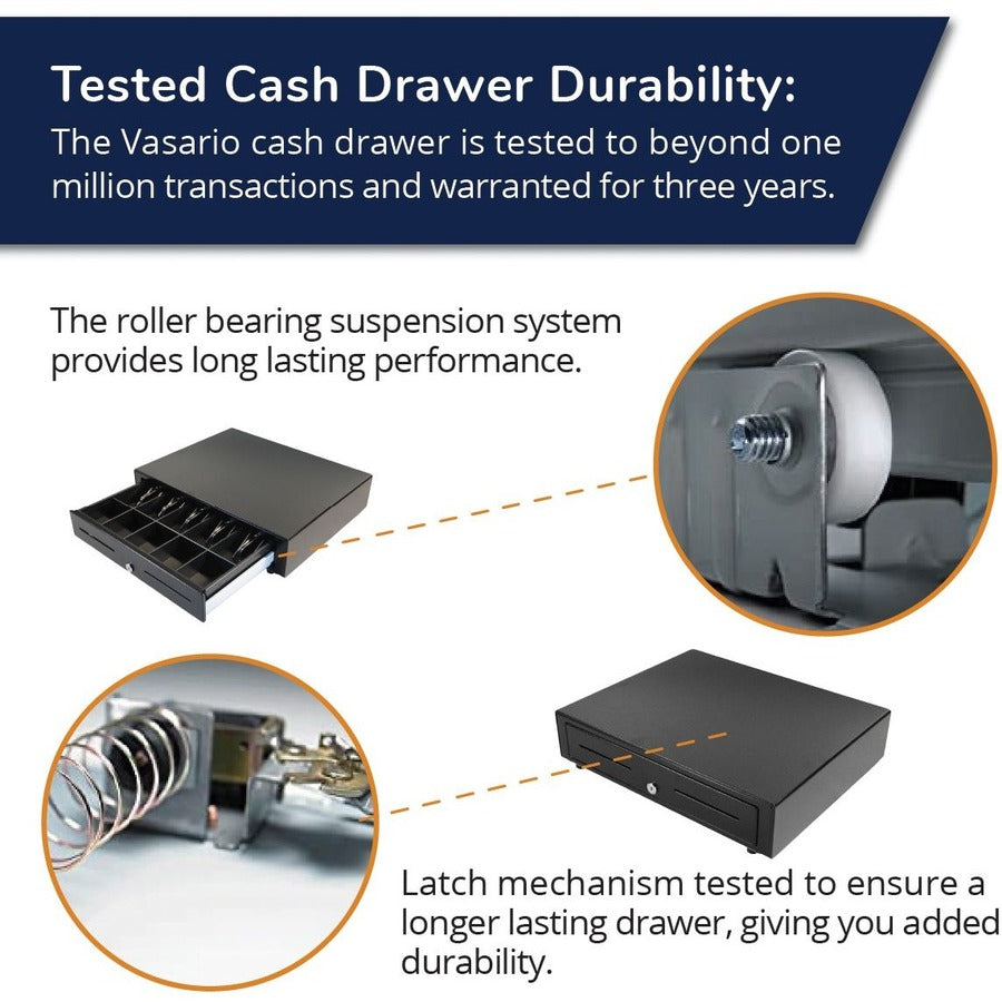 The Vasario Cash Drawer is the cost effective choice that doesn't sacrifice quality or dependability and The perfect solution for applications that can be addressed with a standard duty cash drawer.