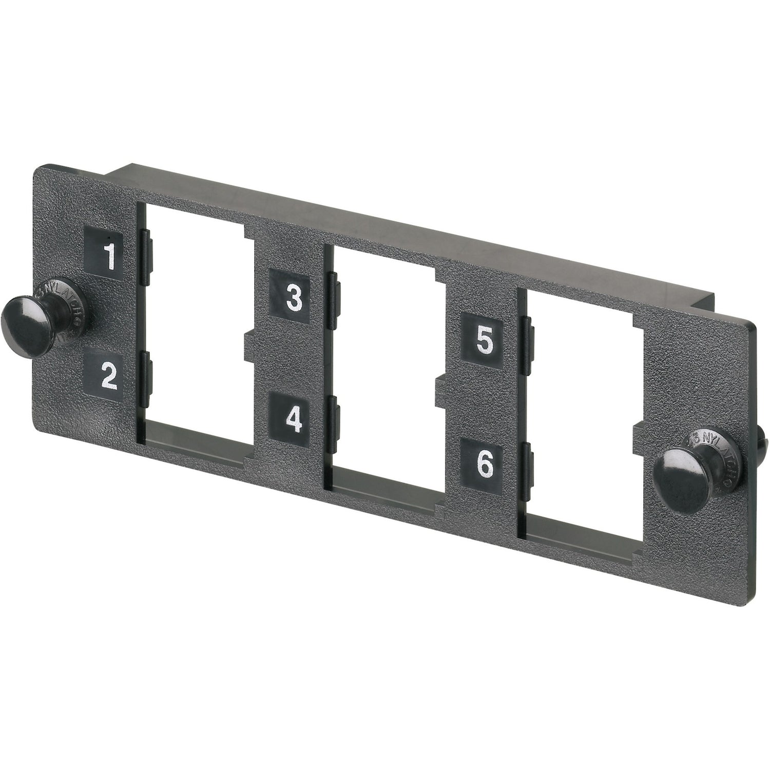 Unloaded panel accepts up to six Mini-Com® Modules for UTP, fiber optic, and audio/video applications.