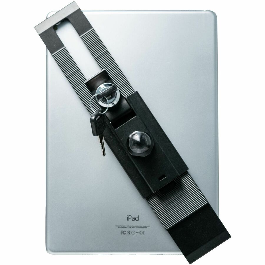 This flexible, multi-jointed tablet mount keeps your tablet safe from theft and fully accessible in the front seat of your car. Designed for use with commercial and passenger vehicles alike, this drill-free car mount installs easily to your vehicle's seat rail using included mounting hardware and can be safely removed at any time. The aluminum arm features tension-locking ball socket joints at the base and head, plus an additional rotating knee joint, giving you virtually infinite positioning options. The slide-adjustable tablet holder also tilts and rotates 360 degrees for portrait and landscape orientations, protecting your tablet from theft with a lock and key security mechanism. Its unique corner-grip design allows full access to your tablet's ports, buttons, cameras, and headphone jack, for card reader compatibility.