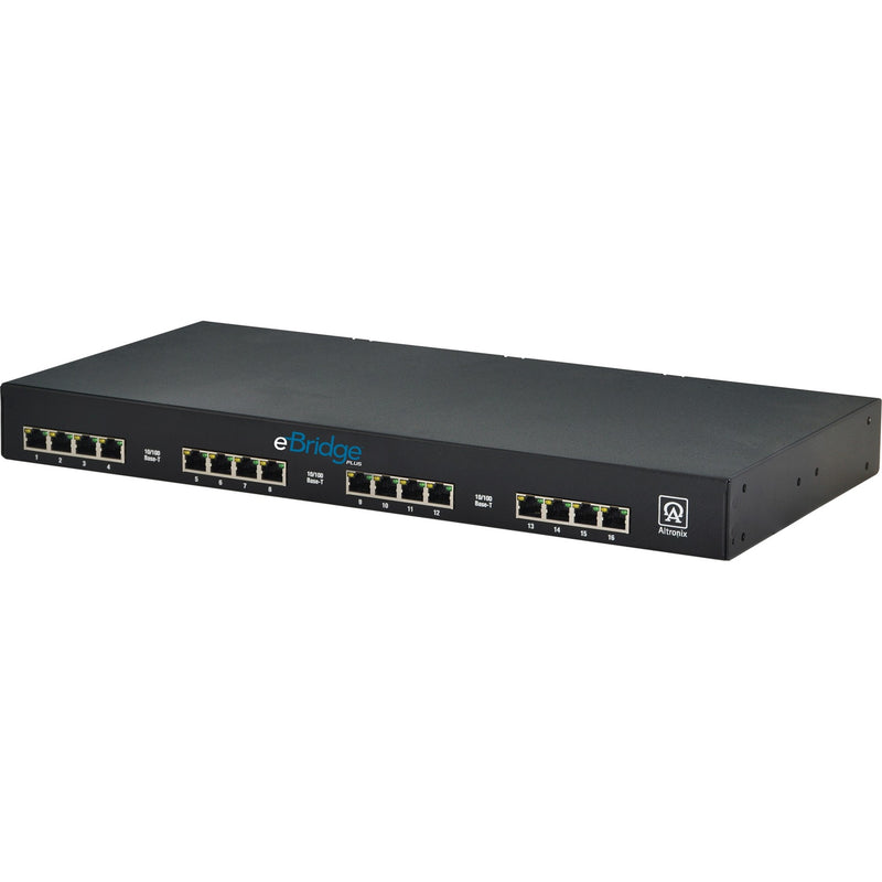 16-Port Ethernet over coax Receiver. Transmits IP video/data over coax up to 300m @ 100mbps full duplex and supports PoE (IEEE 802.3af) or PoE+ (IEEE 802.3at). Compatible with eBridge100TM or eBridge100ST transceiver. 1U EIA 19" Rack Mount Chassis. UL/cUL Listed (UL60950-1). CE Approved.