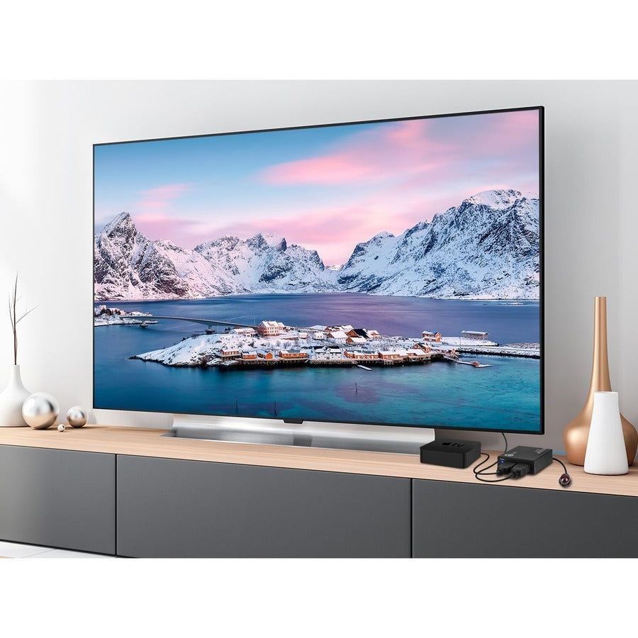 - Supports EDID passthrough and auto downscaling, detects and configures video resolution from 4K to 1080p to the capabilities of each connected monitor.