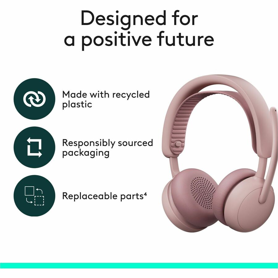 Logitech Zone Wireless 2 ES - Noise-Canceling Wireless Headset with Adaptive Hybrid ANC, Bluetooth, Rose