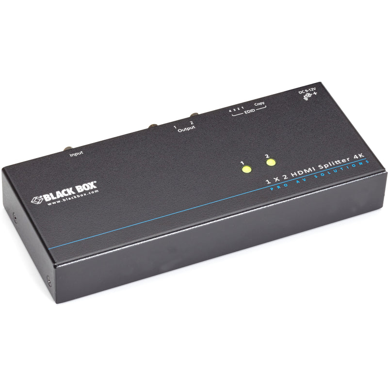 The 4K 1 x 2 HDMI Splitter enables HDMI video and audio distribution from one source to two displays. Advanced EDID functionality enables the splitter to read and copy EDID automatically from the screen, or a user can manually copy the EDID audio/video information to the splitter.
