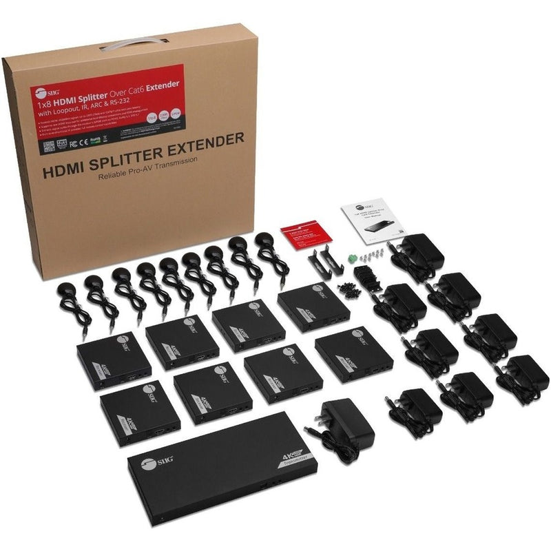 SIIG 1x8 4K 60Hz HDMI Splitter Over Cat6 Extender with Loopout/IR/ARC & RS-232 - Up to 230ft (70m) - Near Zero Latency