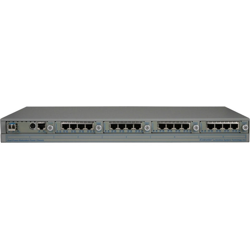 The iConverter 5-Module Chassis is designed for Enterprise Local Area Network (LAN) and Metropolitan Area Network (MAN) applications where fault tolerance and reliability are essential. The 1U (1.75 inch) high iConverter 5-Module Chassis has redundant power supplies and can be mounted in a 19-inch or 23-inch rack.