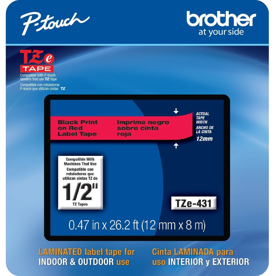 Brother Genuine P-touch replacement label tape is the durable, reliable, and affordable solution for your indoor and outdoor labeling needs. The P-touch TZe-431CS (0.47") black-on-red label tape allows you to create easy to read labels, that are simple to peel, apply, and can be used indoors and out. These 0.47-inch standard laminated P-touch label tapes are resistant to fading and water damage and will not smear or smudge.