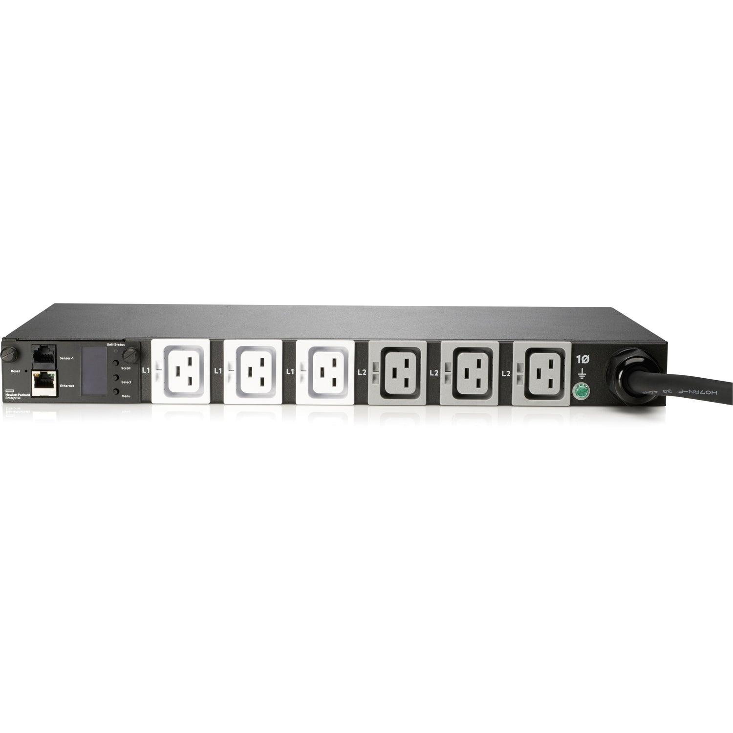 HPE G2 Metered PDU features are also directly focused on other pain points in the data center.1Gb Ethernet alleviates the need to maintain older switch solutions that have been traditionally required for PDU network connectivity. High-density outlet configurations that provide up to 48 power outlets in a full-height vertical form factor allow for simple access to power in the rack while minimizing physical cable requirements. Support for up to eight sensors per PDU provides a cost-effective and exhaustive solution for monitoring the environmental elements (temperature, humidity, and leakage) in both the front and rear of the rack.
