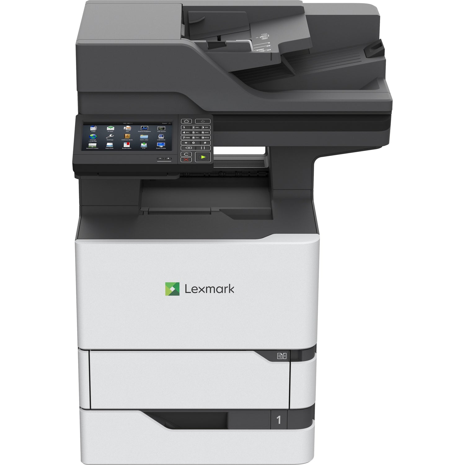 Lexmark MX720 MX722ade Laser Multifunction Printer-Monochrome-Copier/Fax/Scanner-70 ppm Mono Print-1200x1200 Print-Automatic Duplex Print-350000 Pages Monthly-650 sheets Input-Color Scanner-600 Optical Scan-Monochrome Fax-Gigabit Ethernet