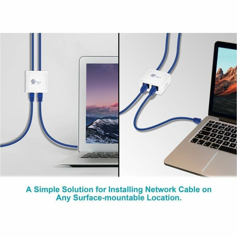 Monoprice 2-Port Cat5e RJ45 Surface Mount Box UL, TAA, Dual IDC, 50u, No Logo, White