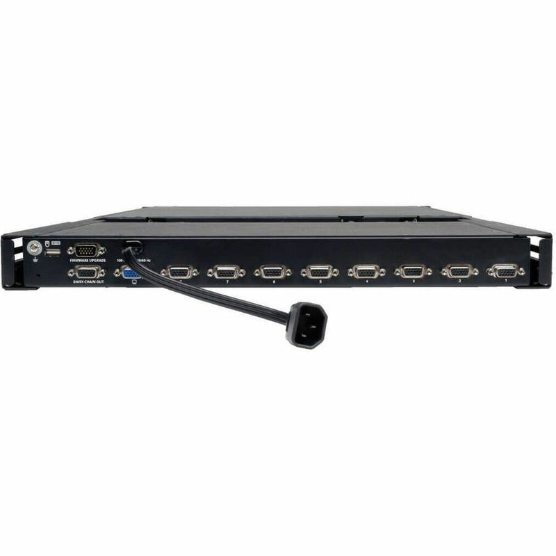 Tripp Lite's B040-008-19 KVM Switch gives you a rack-mountable keyboard, LCD and touchpad in a single console that occupies only 1U of rack space. Easy to install and use, it's the cost-effective solution for controlling up to 8 directly connected computers/servers.The B040-008-19 has a built-in 19" LCD screen that supports video resolutions up to 1366 x 768. You can switch easily between the 8 ports using on-console push buttons, an on-screen display (OSD) or keyboard hot key commands. Password protection prohibits unauthorized users from accessing the connected computers.With this KVM switch, you can increase the number of connected computers up to 248 by daisy-chaining up to 15 B042-Series KVM switches. Uses Tripp Lite P780-series combo cable kits that support both PS/2 and USB connections without the need to purchase additional cables or adapters. An extra HD15 port allows an additional VGA monitor or an external console to be connected. Add a Tripp Lite B051-000 IP Remote Access Unit to connect from anywhere in the world. When not in use, the B040-008-19 stores neatly in a rack drawer and pulls out when needed. This KVM console is compatible with all major operating systems. Rugged steel housing stands up to frequent use. Complies with the Federal Trade Agreements Act (TAA) for GSA Schedule purchases.