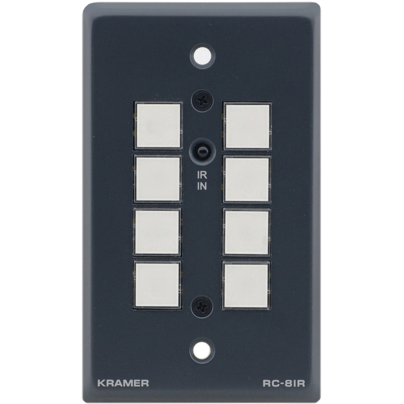 The RC-8iR is an 8-button room controller for multimedia rooms. It controls audio components, video components and other room facilities such as lights and screens.