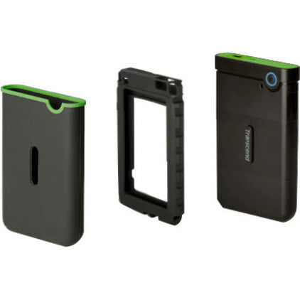 Transcend's StoreJet 25M3C ruggedized external hard drive features the USB 3.1 Gen 1 interface and a USB Type-C port for unmatched transfer rates, and comes with both a USB Type-C cable as well as a Type-C to Type-A cable for max compatibility across devices. Supreme shock-resistant qualities ensure superior protection for data stored on the drive.