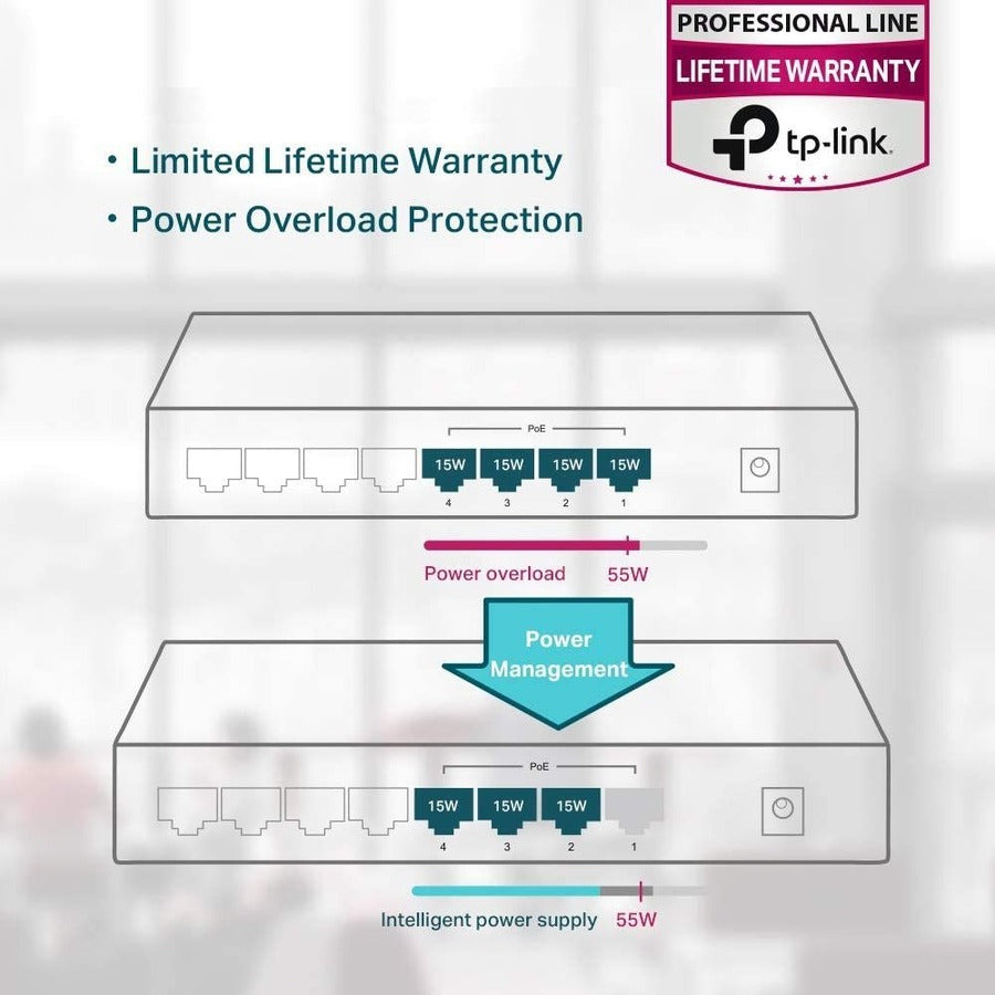 TL-SF1008P is an 8 10/100M ports unmanaged switch that requires no configuration and provides 4 PoE (Power over Ethernet) ports. It can automatically detect and supply power with all IEEE 802.3af compliant Powered Devices (PDs). In this situation, the electrical power is transmitted along with data in one single cable allowing you to expand your network to where there are no power lines or outlets, where you wish to fix devices such as APs, IP Cameras or IP Phones, etc. TL-SF1008P has the priority function which will help protect the system by cutting off the power of the lowest-priority port when the system power is overloaded.