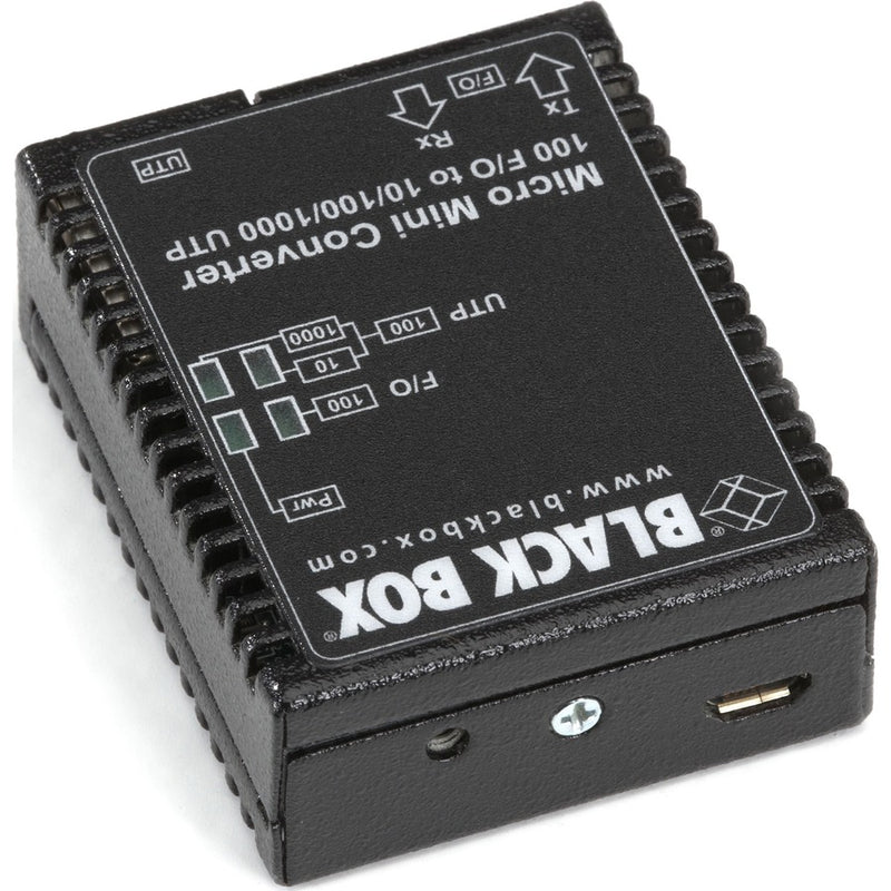 • The Micro Mini Media Converter is ideal for bringing fiber to the desktop and for mobile applications where light weight, compact size, and low power requirements are critical. Weighing only 2.5 ounces and about the length of a house key, this ultra-compact media converter is portable yet powerful. For extra versatility, it can be USB-powered, making it easy to provide fiber connectivity to locations where AC or DC power is unavailable, for instance, field-deployed fiber-to-the-laptop. For easy portability, this tiny converter conveniently slips into a pocket or laptop carrying case. The converter is plug-and-play with an RJ-45 port that autonegotiates for speed, duplex mode, and crossover functions for PCs with 10BASE-T, 100BASE-TX, and 1000BASE-T Ethernet. On the fiber side, the converter accepts SFPs for connection to a variety of Fast Ethernet fiber types. Use it with Black Box 155-Mbps SFPs (LFP401-LFP404) or any other standard 155-Mbps SFP. Because it can be powered through a computer's USB 1.0 or 2.0 port, the Micro Mini Media Converter is ideal for connections to fiber in areas where a spare power outlet may not be available. When plugged into a computer's USB port, the media converter shuts down automatically when you turn off the computer, which saves energy.