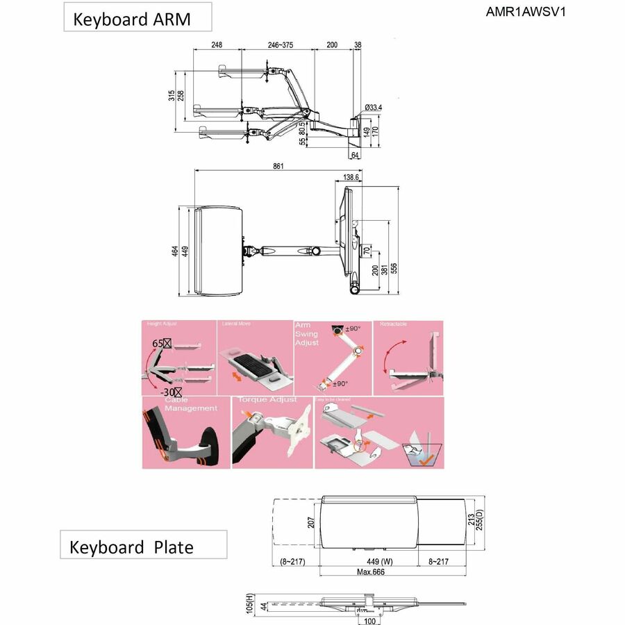 This Amer Combo Wall Mount Workstation System provides an ergonomic and convenient method to create work efficiencies and maximum space utilization. Designed with individual arms to hold the display and keyboard separately, this sit-stand wall mount system allows for easy collaboration and high flexibility in both function and ease of use. The Mount system comes with a CPU wall mount holder to allow for the easy storage and accessibility of the main processing unit and a mouse holder to keep the station neat and organized. Amer's articulating mounts support a wide variety of monitor sizes, including : Up to 32" wide screen (16:9) Up to 32" Ultra wide screen (21:9) Up to 32" Curved Monitor (1800R)