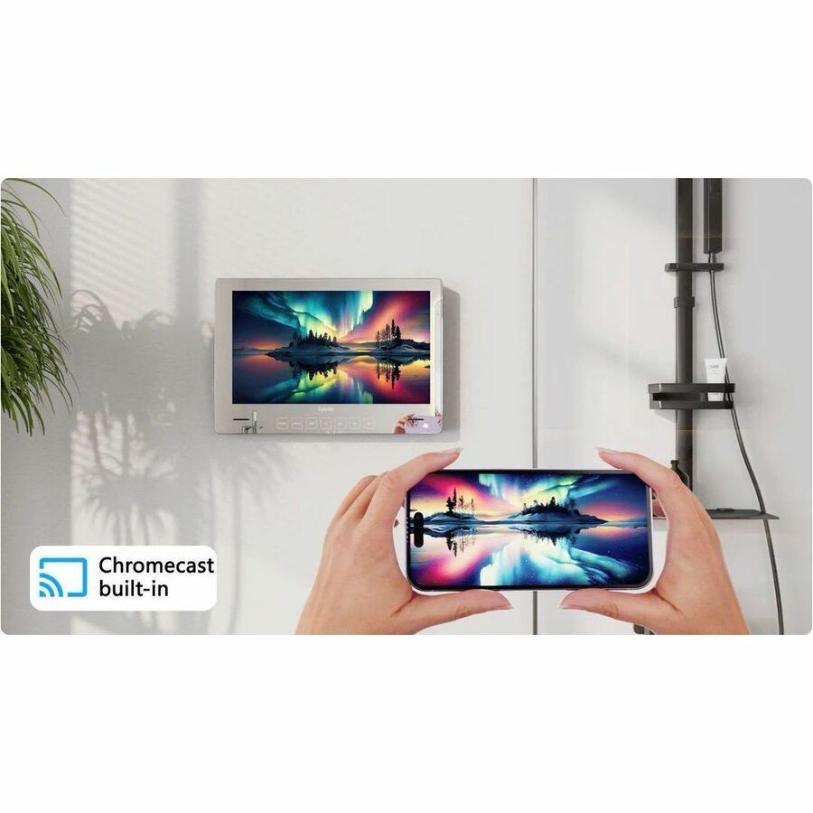 With IP65 waterproof rating, full mirror surface, and hiden mirror vibration, the sylvox bathroom TV can be directly installed in a hotel bathroom, sauna bathroom, and other humid enviroments.