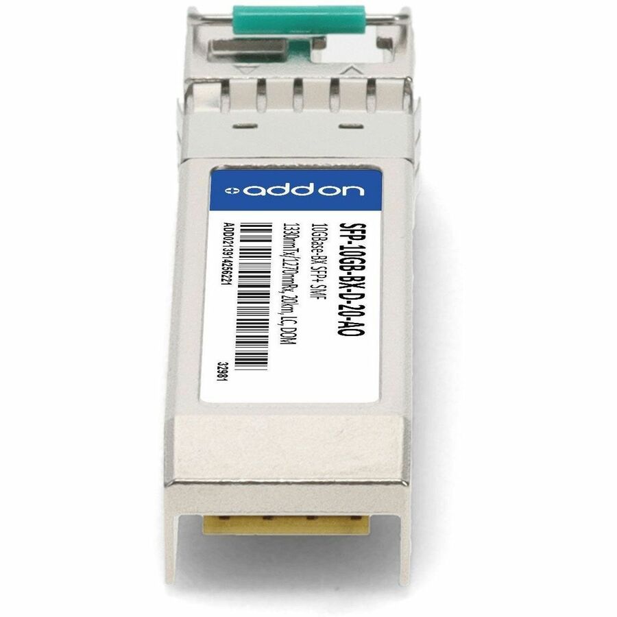 AddOn MSA and TAA Compliant 10GBase-BX SFP+ Transceiver (SMF, 1330nmTx/1270nmRx, 20km, LC, DOM)