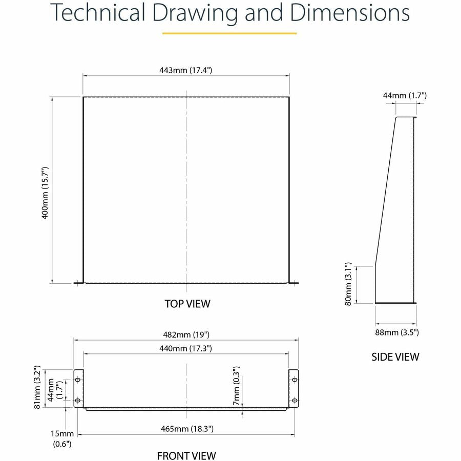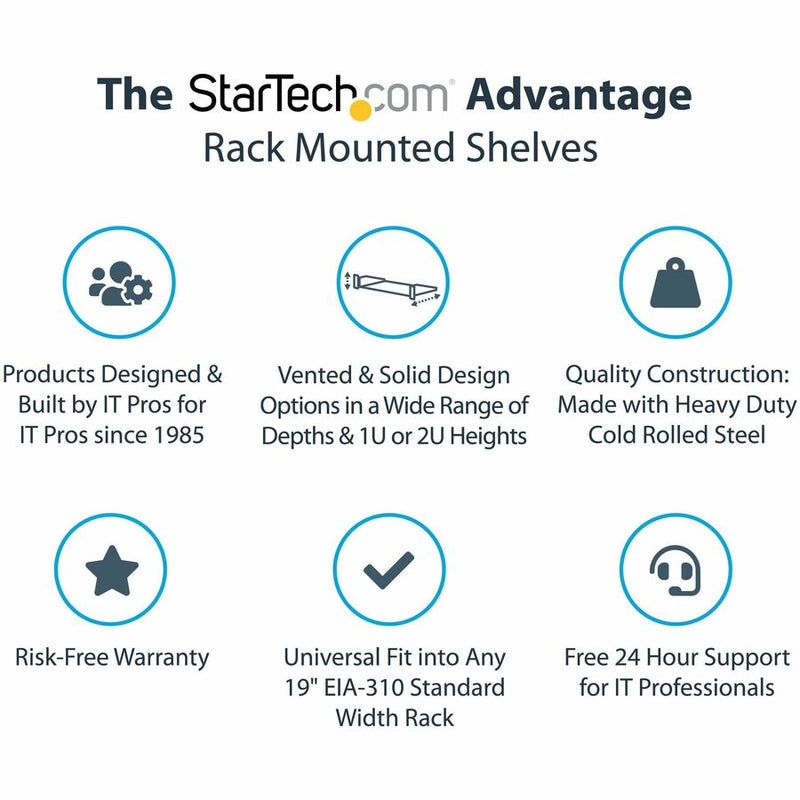 Universally mountable in any standard front mount 19" server rack or cabinet, the rack shelf is constructed of sturdy, cold-rolled steel for long-term durability.