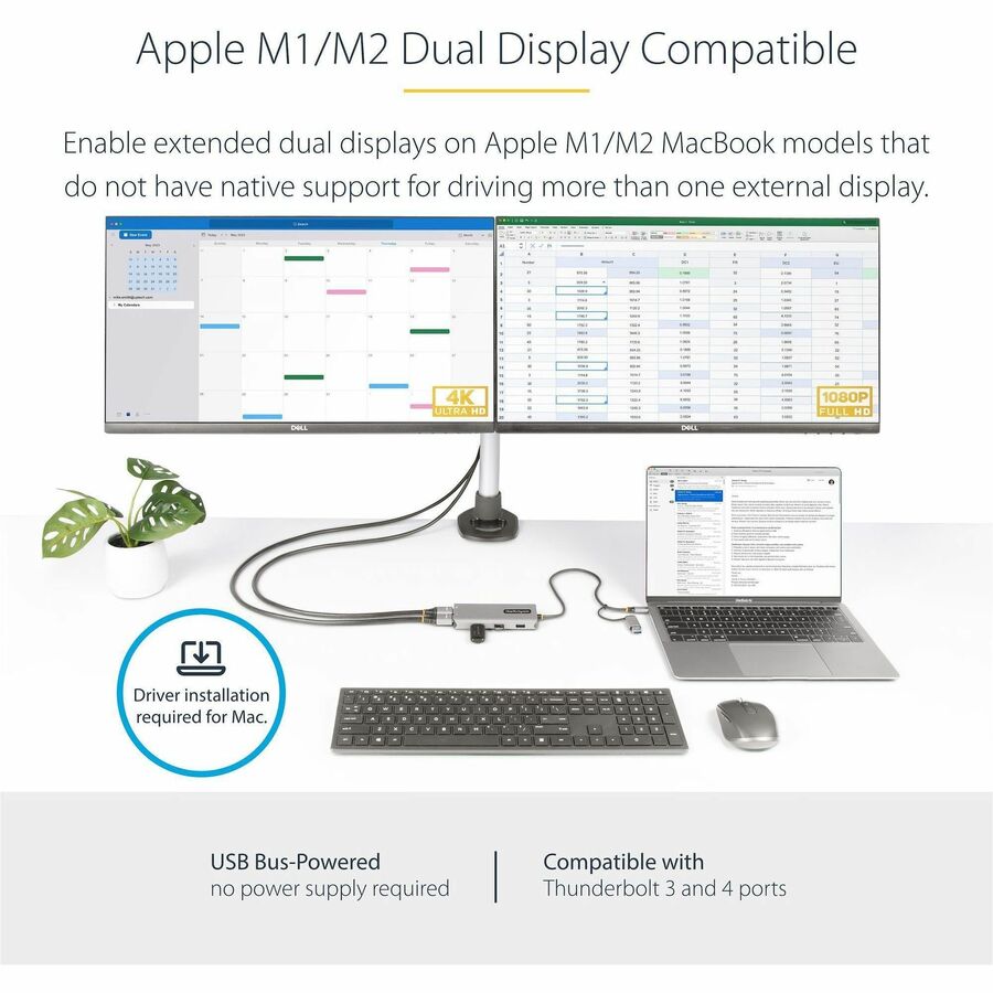 - APPLE M1/M2 DUAL DISPLAY COMPATIBLE: Universal compatibility with macOS, Windows and ChromeOS, enabling extended dual displays on USB & TB3/4 laptops incl. Apple M1/M2 MacBooks which are not capable of driving more than 1 external display natively
