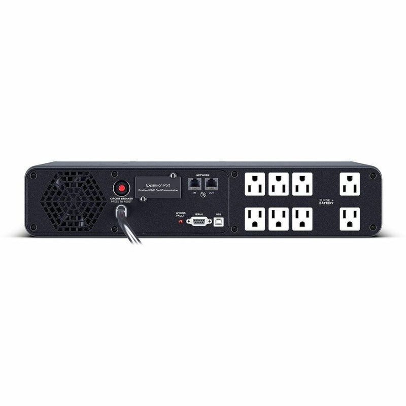 The CP1500PFCRM2U is a PFC Sinewave rackmount UPS that provides battery backup (using sine wave output), surge protection, and EMI/RFI filtration for security systems, audio/visual equipment, and networking equipment requiring active PFC power source compatibility.