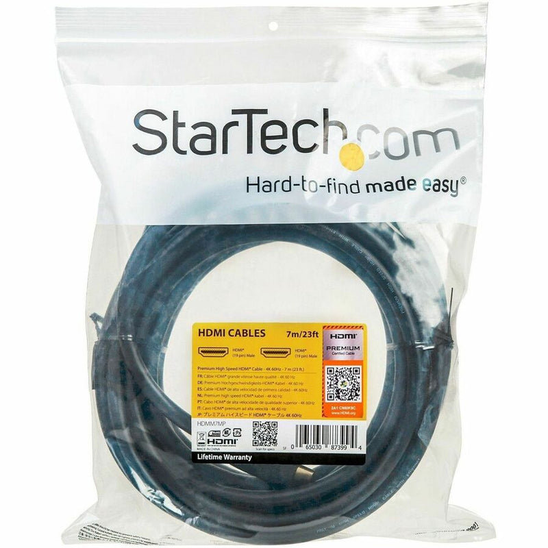 StarTech.com 23ft (7m) Premium Certified HDMI 2.0 Cable with Ethernet, High Speed Ultra HD 4K 60Hz HDMI Cable HDR10, UHD HDMI Monitor Cord