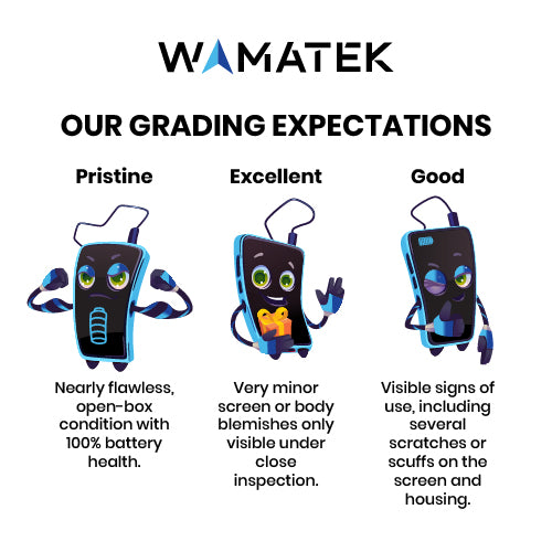 - Pristine: Appearance: Open Box, nearly flawless condition. Device will have 100% battery health.