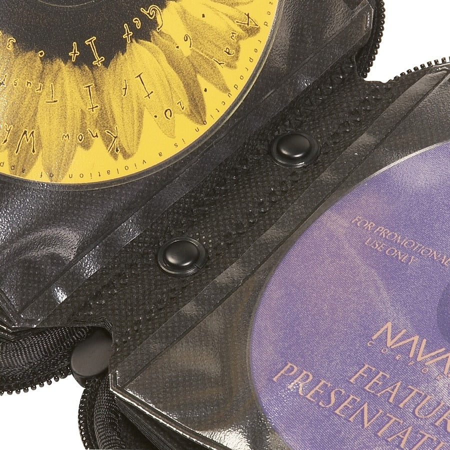 Heavy duty molded CD Wallet holds 24 CDs in patented ProSleeve pages.