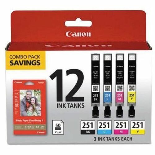 Canon COMBO PK CLI 251 BK C M, Original Inkjet Ink Cartridge Cyan Magenta Yellow Black 12 is backordered and will ship as soon as it is back in stock.