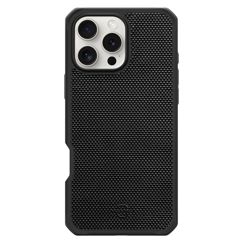 ITSKINS BallisticR Nylon MagSafe Case for Apple iPhone 16 Pro MaxBALLISTICR NYLON Combines a ballistic nylon weave back for rugged style and durability with a textured solid bumper for enhanced grip. It boasts a 2X Stronger MagSafe for secure attachment is AI-enhanced to withstand drops up to 3m / 10ft and is eco-friendly with Global Recycled Standard Certification. Includes features like air-pocket corners antimicrobial protection and responsive buttons making it perfect for an active lifestyle all supported by a lifetime warranty.Product FeaturesDurable nylon weave back made from recycled water bottles2x Stronger magnets integrated into the case layersCompatible with magsafe chargers and accessoriesInnovative ai-designed drop protection up to 3m / 10ftTextured solid bumper for enhanced gripRaised edges protect your screen and cameraAction button friendly designGerm-fighting antimicrobial defenseMade from 100 recycled materialsLifetime Warranty https//itskins.com/pages/warranty