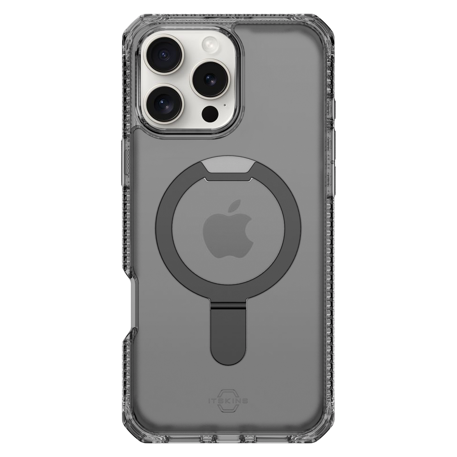 ITSKINS - HybridR Vapor Stand MagSafe Case with Stand for Apple iPhone 16 Pro Max - BlackHYBRID R VAPOR STAND comes packed with features like a versatile built-in magnetic ring acting as a stand or holder and is MagSafe-compatible. Designed to sit flush for ease of pocket use. Showcases a matte frosted hardback with a glossy clear bumper accentuating your phones titanium trim. Offers AI-enhanced drop protection up to 3M / 10ft is eco-friendly with Global Recycled Standard Certification and includes air-pocket corners antimicrobial protection and responsive buttons. Geared for the active lifestyle with a Lifetime Warranty.Product FeaturesIntegrated folding stand holder within the magsafe ringDrop protection up to 3m / 10ft2x Stronger magnets integrated into the case layersCompatible with magsafe chargers and accessoriesNever-yellowing crystal clear rigid polycarbonate backRaised edges protect your screen and cameraAction button friendly designGerm-fighting antimicrobial defenseMade from 100 recycled materialsLifetime Warranty https//itskins.com/pages/warranty
