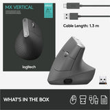 Logitech MX Vertical Wireless Mouse - Ergonomic Design Reduces Muscle Strain, Rechargeable, Graphite