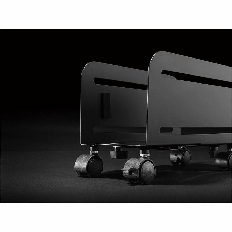 Upgrade and customize your workspace with this mobile computer case stand. Reclaim precious desk space by moving your computer below your desk. Don't just place it on the floor or carpet where it could be subject to dust, poor air circulation, and liquid spills. Use this mobile metal stand for a stable elevated platform that adjusts to fit your computer perfectly.