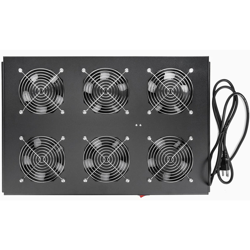 The SolidRack 42U R3100 cabinet may benefit from improved ventilation, courtesy to the SolidRack Fan Tray. This premium device includes mounting hardware and six high performance 110V fans all installed in this high-quality roof panel. Integrated cable access holes allow cables to be routed through the fan roof panel. 110V, 50-60 Hz AC input is supported.
