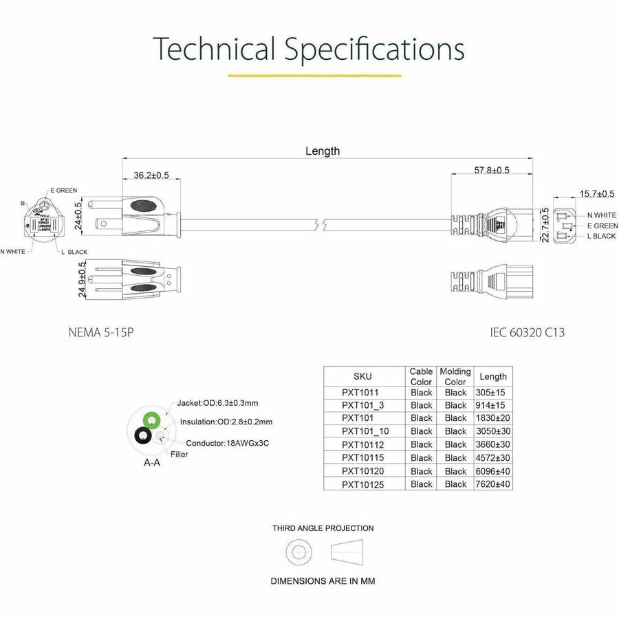 StarTech.com 10ft (3m) Computer Power Cord, NEMA 5-15P to C13, 10A 125V, 18AWG, Black Replacement AC PC Power Cord, TV/Monitor Power Cable is backordered and will ship as soon as it is back in stock.