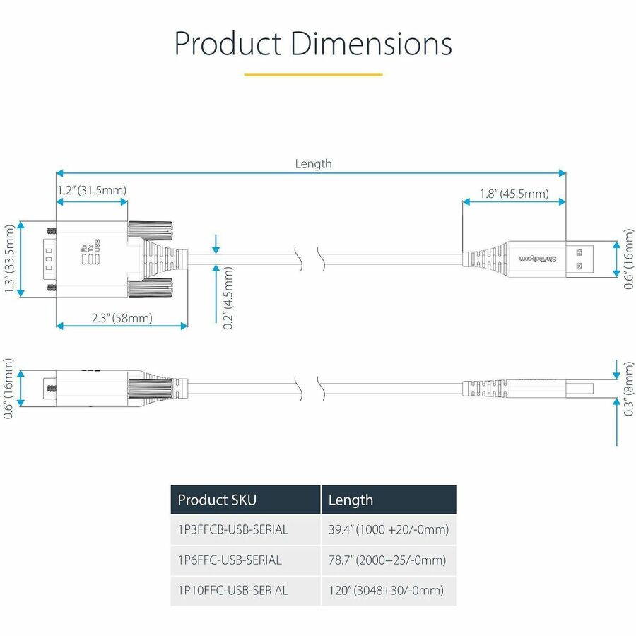 StarTech.com 10ft (3m) USB to Serial Adapter Cable, COM Retention, FTDI, DB9 RS232, Interchangeable DB9 Screws/Nuts, Windows/macOS/Linux is backordered and will ship as soon as it is back in stock.