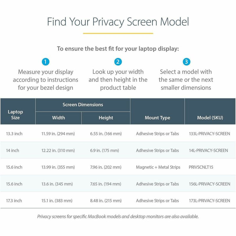 StarTech.com 17.3-inch 16:9 Laptop Privacy Filter, Anti-Glare Privacy Screen w/51% Blue Light Reduction, +/- 30Β° View Angle, Matte/Glossy