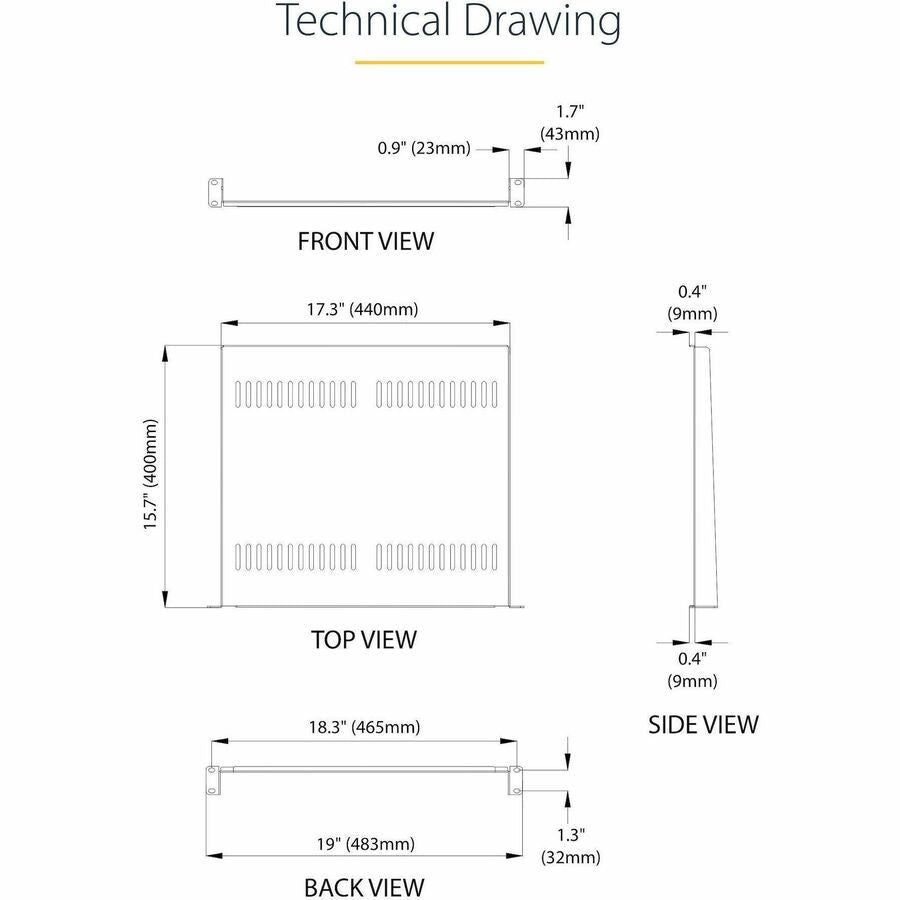 • UNIVERSAL 19'' FIT: 1U vented server rack mount shelf is designed to fit any EIA-310-compliant 19-inch server rack or cabinet; Mounting depth of 15.7in (40cm) for data, IT, networking, or other non-rackmount equipment
