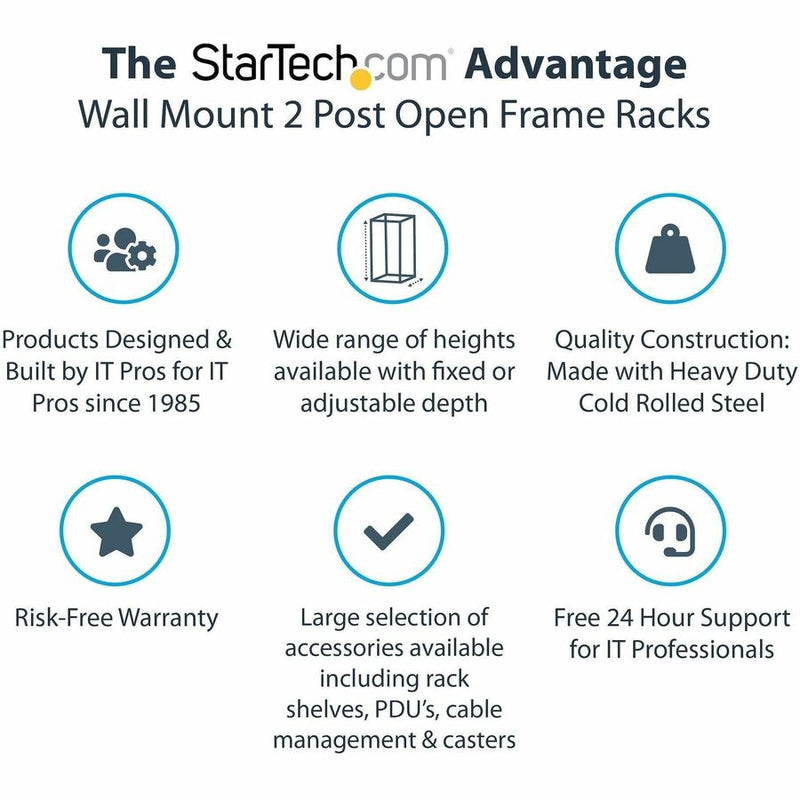 - STARTECH.COM ADVANTAGE: IT professionals choice for over 30 years; this 2-post adjustable wallmount rack is backed for 5 years by StarTech.com, including free 24/5 North America based multi-lingual tech support