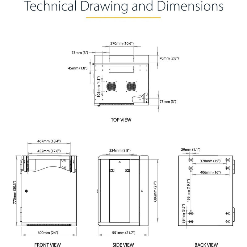 This 15U server or network rack cabinet lets you mount your EIA-310 compliant equipment to the wall, in a secure enclosure that has a hinged rear door for easy access to your equipment. The enclosure features adjustable mounting depth from 2.4 to 16.1 in. to provide a robust storage solution for your rack-mount equipment.