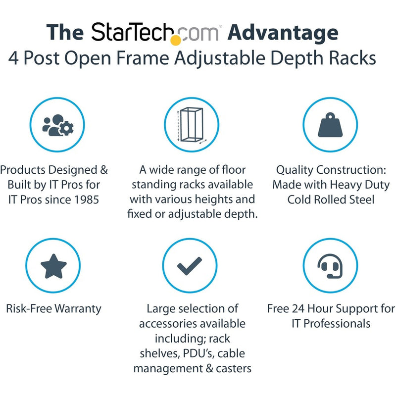 The 4POSTRACK42 42U Server Rack lets you store your servers, network and telecommunications equipment in a sturdy, adjustable depth open-frame rack.