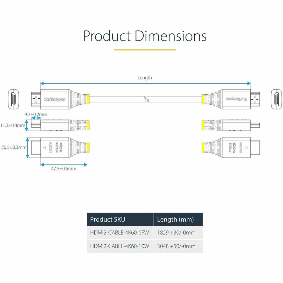 StarTech.com 6ft (1.8m) Premium Certified High Speed HDMI Cable, 4K 60Hz/1440p 144Hz, 18Gbps, UHD HDMI 2.0 Cord, TPE Jacket, White