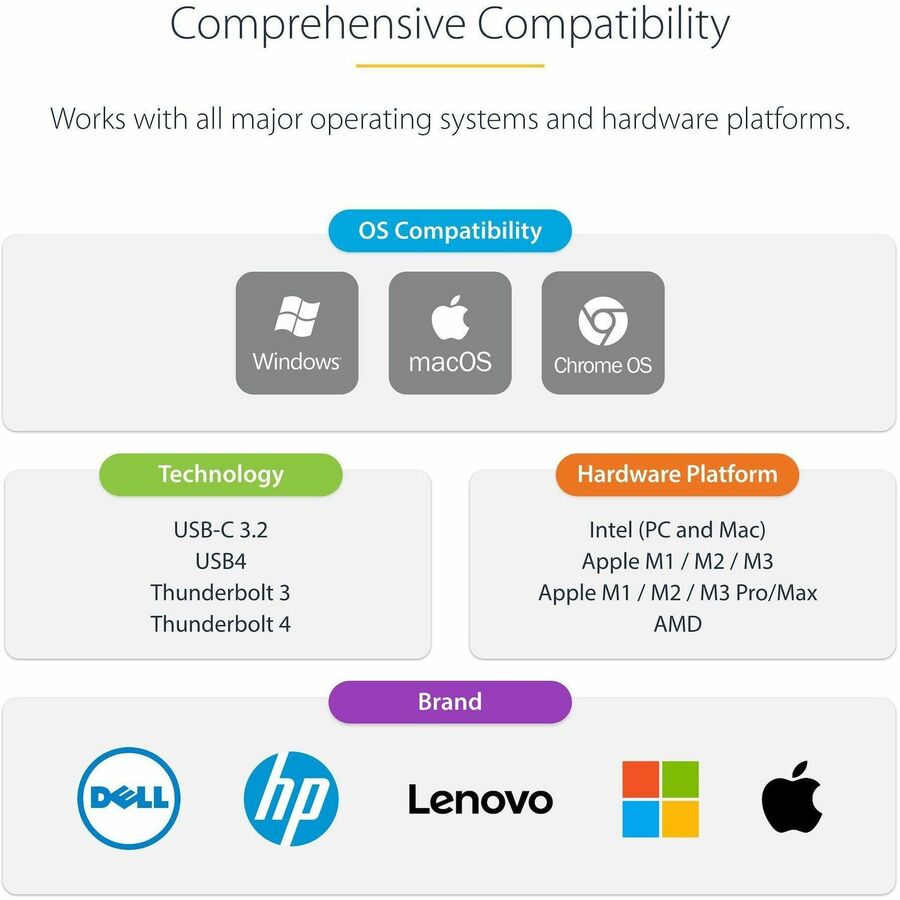 This USB-C Gen 2 docking station with DP 1.2 and HDMI 2.0 HDR support, is a perfect choice for dual, triple, or quad monitor setup, supporting up to quad 4K 60Hz display output, with any combination of four DisplayPort or HDMI video interfaces, on USB-C Gen 2 laptops, MacBooks (including M1 based systems) and Windows-based Thunderbolt 3 laptops.