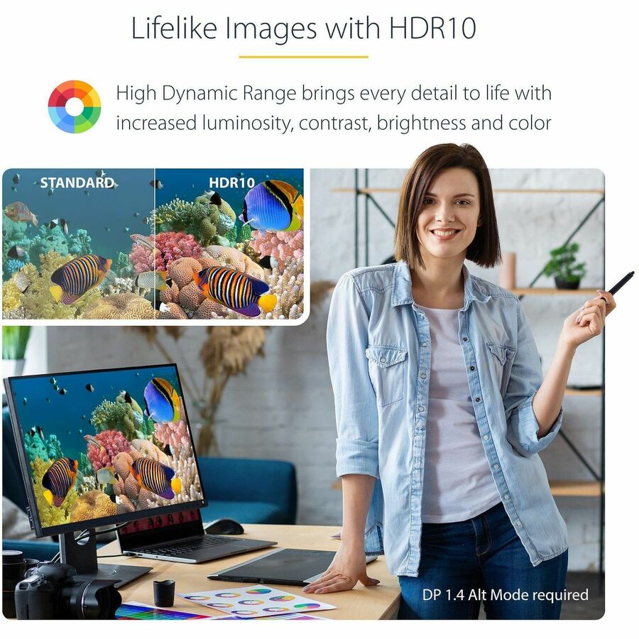 This USB-C multiport adapter with DP 1.4 supports 4K 60Hz HDMI® (HDR) and turns your MacBook Pro, Dell XPS, or other USB-C™ laptops or tablet into a workstation, anywhere you go. The USB Type-C multiport adapter provides 4K HDMI video output, two USB 3.1 Gen 2 Type-A (10Gbps) ports, an SD card reader and a Gigabit Ethernet port all through one connection to your laptop's USB-C or Thunderbolt 3/4™ port. Plus, it offers advanced charging through USB Power Delivery 3.0 and an extra-long attached 10-inch (25 cm) host cable for an extended reach to offer more set up flexibility.