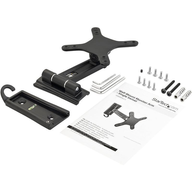 StarTech.com Wall Mount Monitor Arm, Single Swivel, For VESA Mount Monitors / Flat-Screen TVs up to 34" (33.1lb/15kg), Monitor Wall Mount